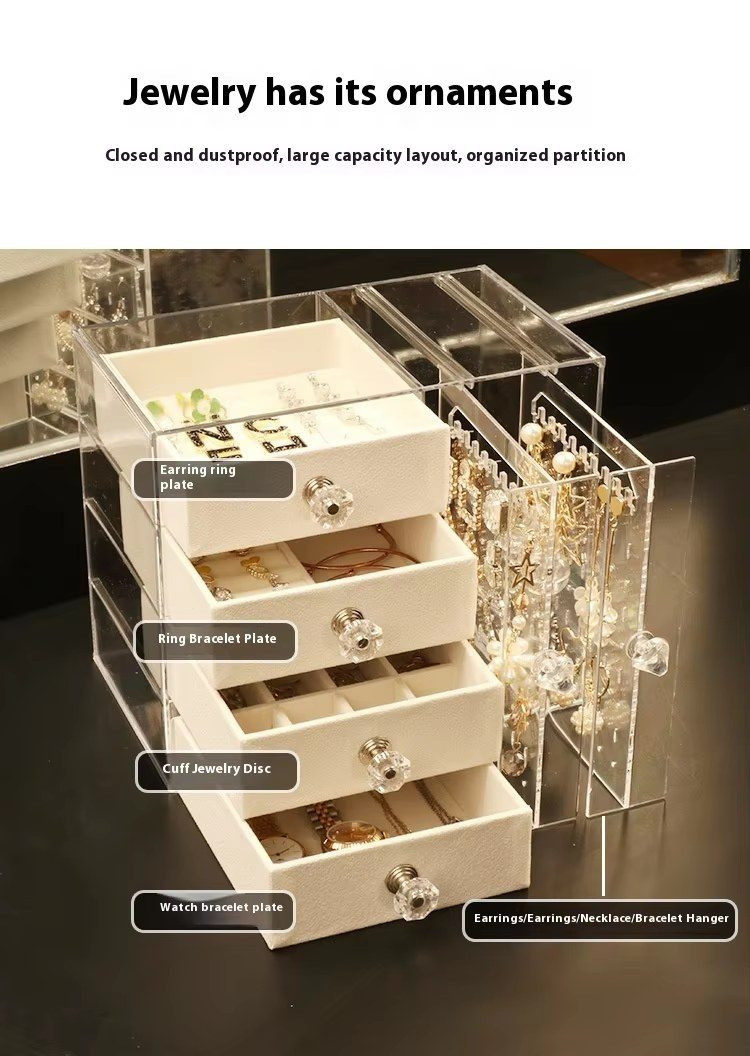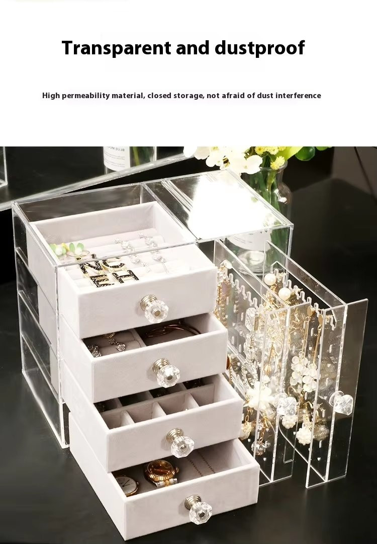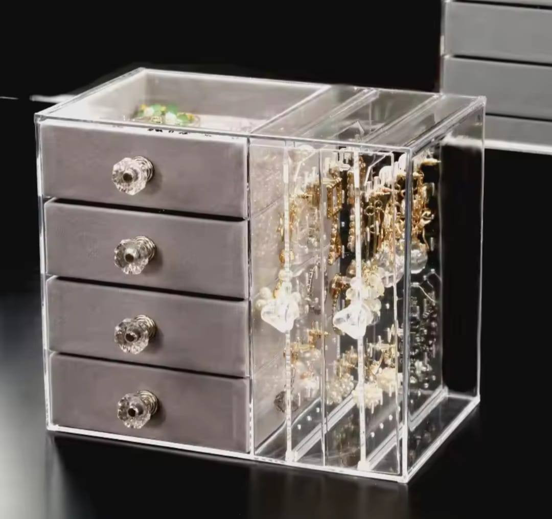 Clear Jewellery Display Organizer আপনার গয়না রাখাকে করবে আরও পরিপাটি, স্টাইলিশ এবং সহজলভ্য। Transparent Acrylic Body + Soft Velvet Drawer আপনার Earrings, Rings, Necklace, Bracelet সবকিছুকেই নিরাপদে ও স্ক্র্যাচ-ফ্রি রাখে। Dressing Table বা Showcase—যেখানেই রাখেন না কেন, এটি দেবে প্রিমিয়াম লুক।