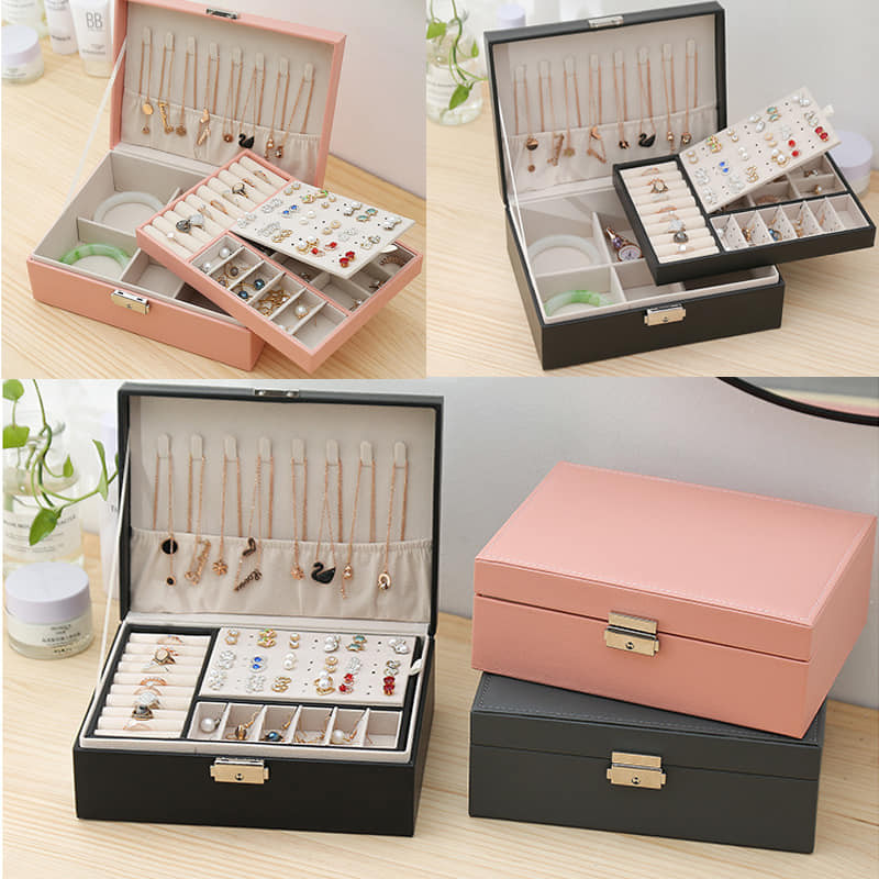 এই Double Layer Velvet Jewellery Box আপনার প্রিয় গহনাগুলো সংরক্ষণের জন্য একটি স্টাইলিশ ও সুরক্ষিত সমাধান। ডাবল লেয়ার ডিজাইনের কারণে নেকলেস, আংটি, ইয়ারিং ও ব্রেসলেট আলাদা আলাদা সেকশনে গুছিয়ে রাখা যায়। High-quality PU leather exterior ও ভেতরের soft velvet lining গহনাকে রাখে scratch-free ও দীর্ঘদিন সুরক্ষিত।