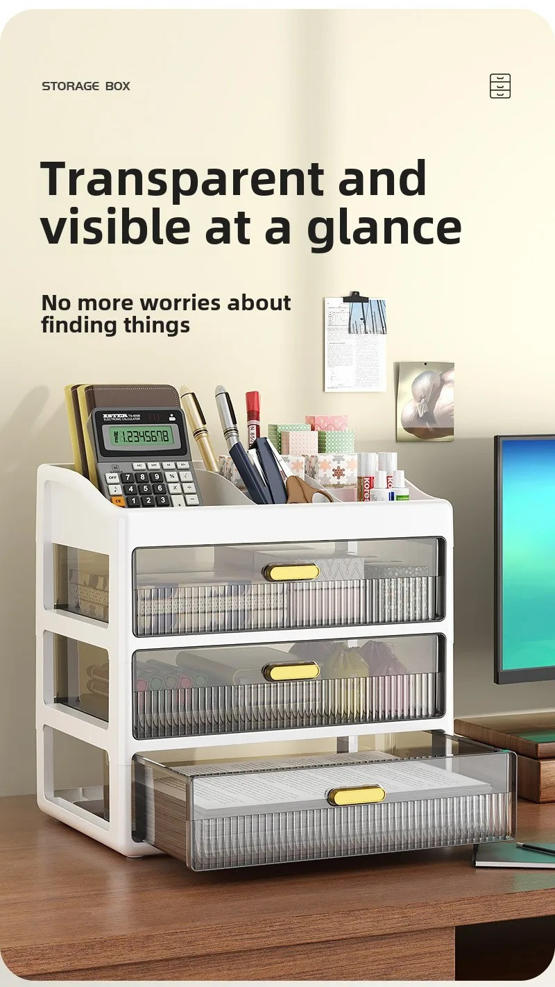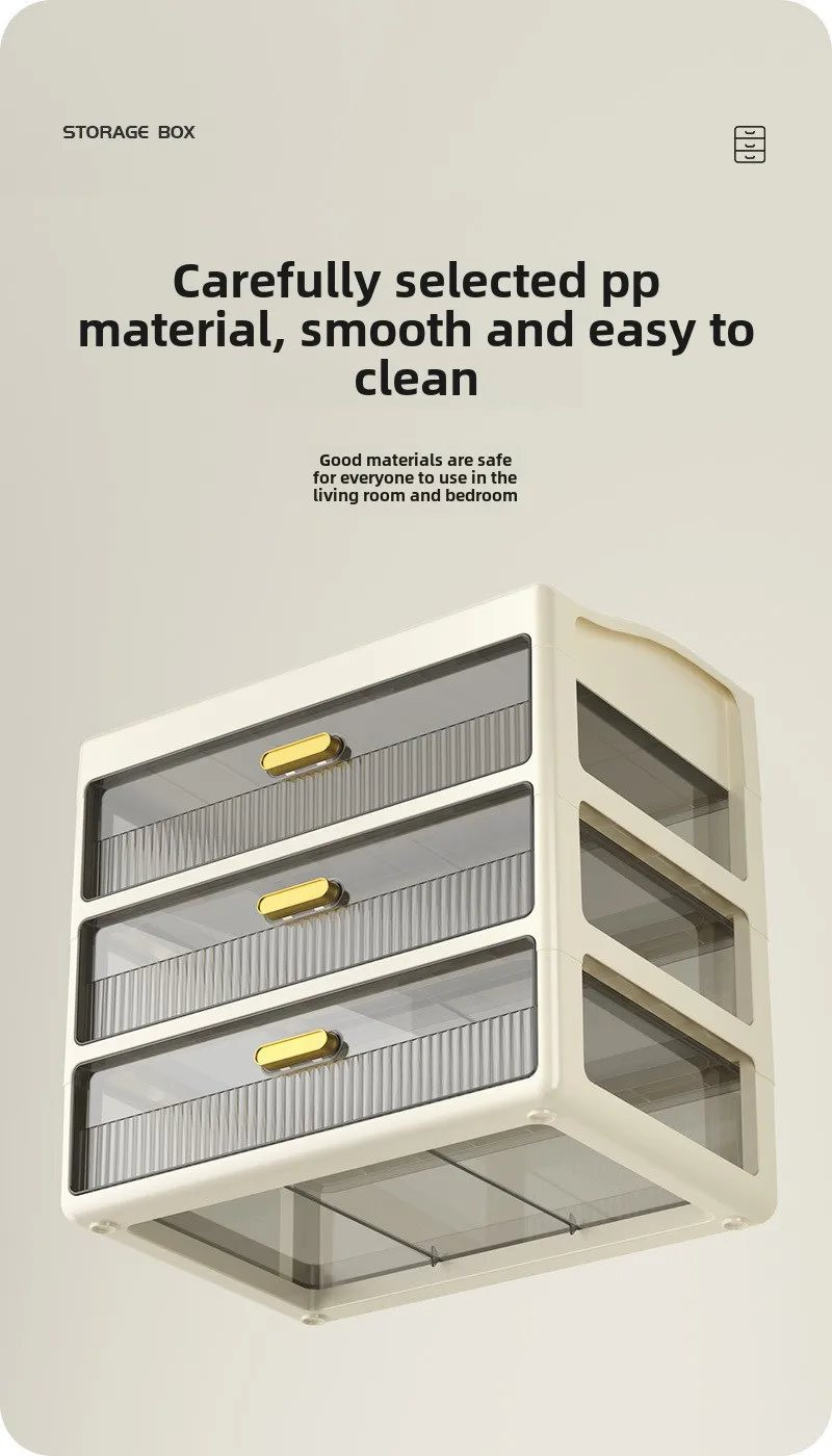 আপনার ডেস্ক বা ড্রেসিং টেবিলকে রাখুন পরিপাটি ও স্টাইলিশ এই Drawer Transparent Storage Box-এর মাধ্যমে। এর large capacity design-এ আপনি রাখতে পারবেন মেকআপ, স্টেশনারি, জুয়েলারি, skincare পণ্য বা অফিস এক্সেসরিজ। Transparent body-এর কারণে ভিতরের জিনিস সহজে দেখা যায় এবং Dust-proof কাভার আপনার প্রিয় জিনিসগুলোকে ধুলোবালি থেকে সুরক্ষিত রাখে। High-quality PP material দিয়ে তৈরি হওয়ায় এটি মজবুত, lightweight এবং long-lasting।