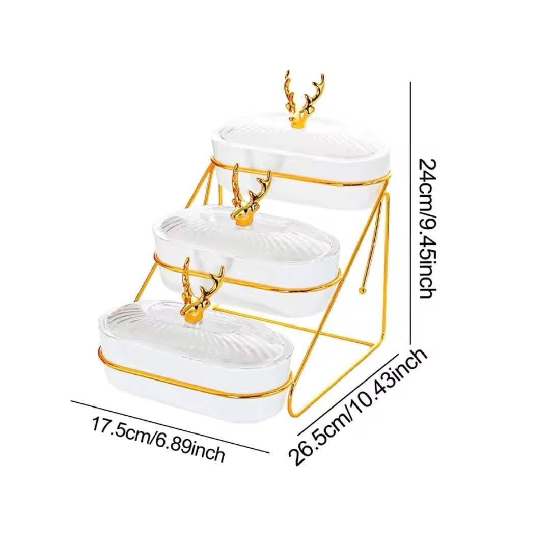 Multi-layer Fruit Plate আপনার ডাইনিং টেবিল বা অতিথি আপ্যায়নকে করবে আরও স্টাইলিশ ও গোছানো। 3-tier ডিজাইনের এই ট্রেটি একসাথে ফল, বাদাম, কুকিজ বা স্ন্যাকস পরিবেশনের জন্য আদর্শ। Thick plastic ও শক্ত metal frame দিয়ে তৈরি হওয়ায় এটি টেকসই ও নিরাপদ। উপরের 3D Elk ডিজাইন লিড ট্রেটিকে দেয় একটি এলিগ্যান্ট ও প্রিমিয়াম লুক।