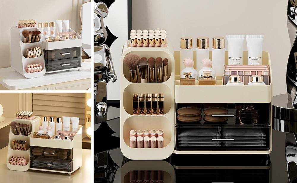 নিয়ে আসো এই Makeup Organizer with Drawers for Vanity, যেখানে তোমার প্রতিটি স্কিনকেয়ার, মেকআপ ও পারফিউম থাকবে একদম পরিপাটি ও স্টাইলিশভাবে সাজানো।