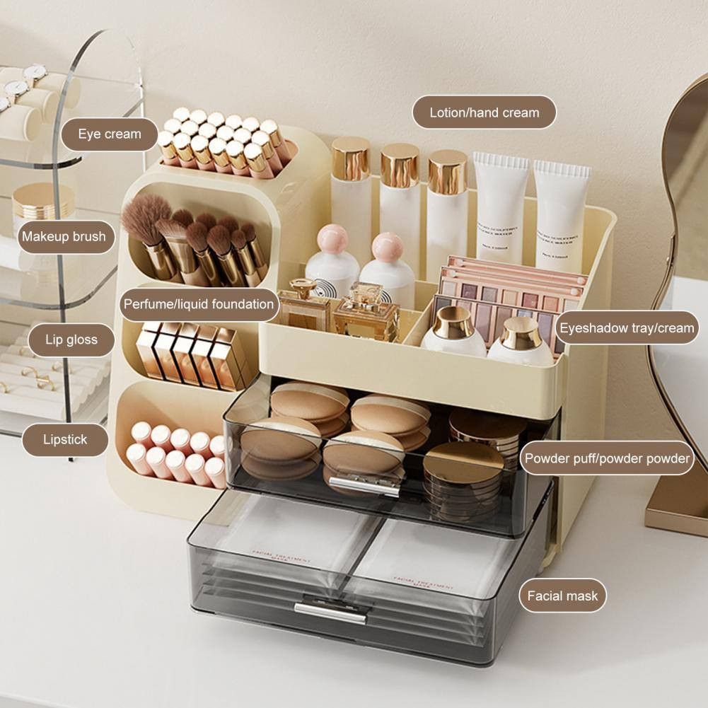 Keeps cosmetics, skincare & jewelry neatly arranged