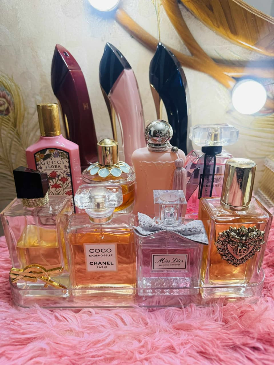 Organizes perfume, skincare & makeup bottles