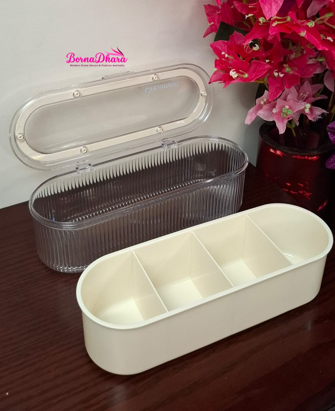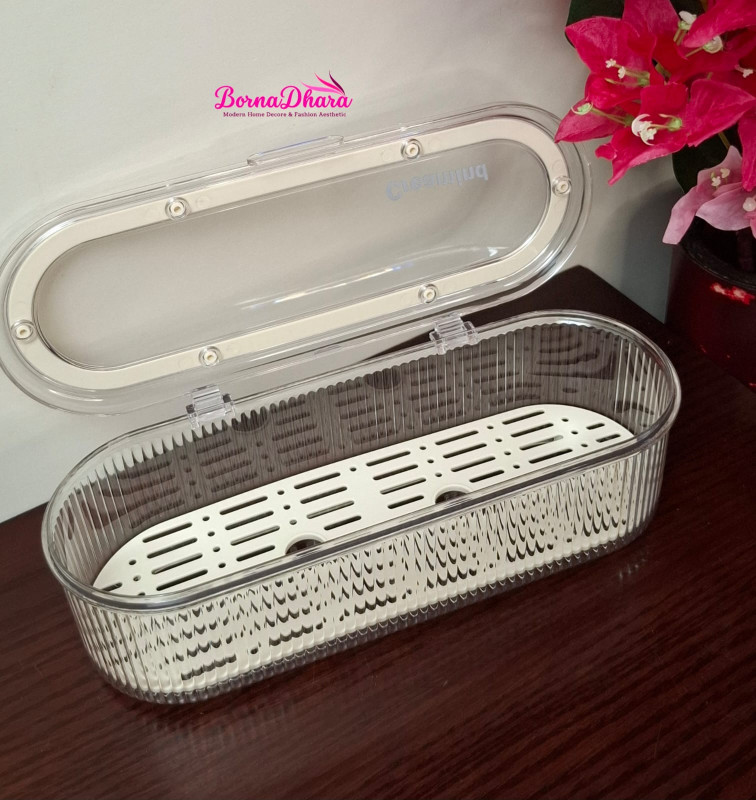 Transparent Multi-Purpose Organizer আপনার মেকআপ ব্রাশ, কিচেন চপস্টিক বা অন্যান্য দৈনন্দিন ছোট জিনিস গুছিয়ে রাখার জন্য একটি কার্যকর ও স্টাইলিশ সমাধান। কমপ্যাক্ট ডিজাইন ও স্বচ্ছ প্লাস্টিক ম্যাটেরিয়ালের কারণে ভিতরের জিনিস সহজেই দেখা যায় এবং জায়গা থাকে পরিষ্কার ও পরিপাটি।