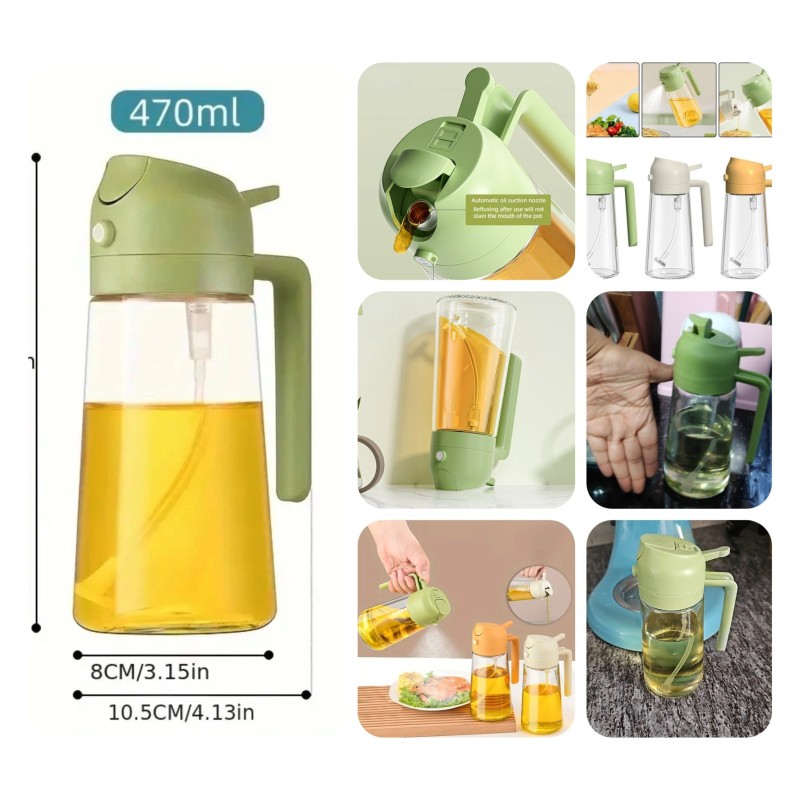 এই তেল বোতলটি সঠিক তেল নিয়ন্ত্রণ নিশ্চিত করে। এটি স্প্রে এবং ঢালার সুবিধা সহ, রান্নায় তেল ব্যবহারে সুবিধাজনক।
