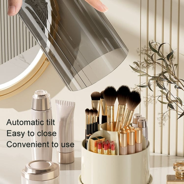 Makeup Brush Holder with Drawer আপনার ভ্যানিটি টেবিলকে রাখবে পরিষ্কার, পরিপাটি ও এলিগ্যান্ট। 360° রোটেটিং ফিচারের মাধ্যমে সহজেই প্রয়োজনীয় ব্রাশ ও কসমেটিক্স ব্যবহার করা যায়। স্লাইডিং ক্লিয়ার ঢাকনা ধুলো ও ময়লা থেকে সুরক্ষা দেয় এবং নিচের ড্রয়ারে ছোট এক্সেসরিজ গুছিয়ে রাখা যায়।