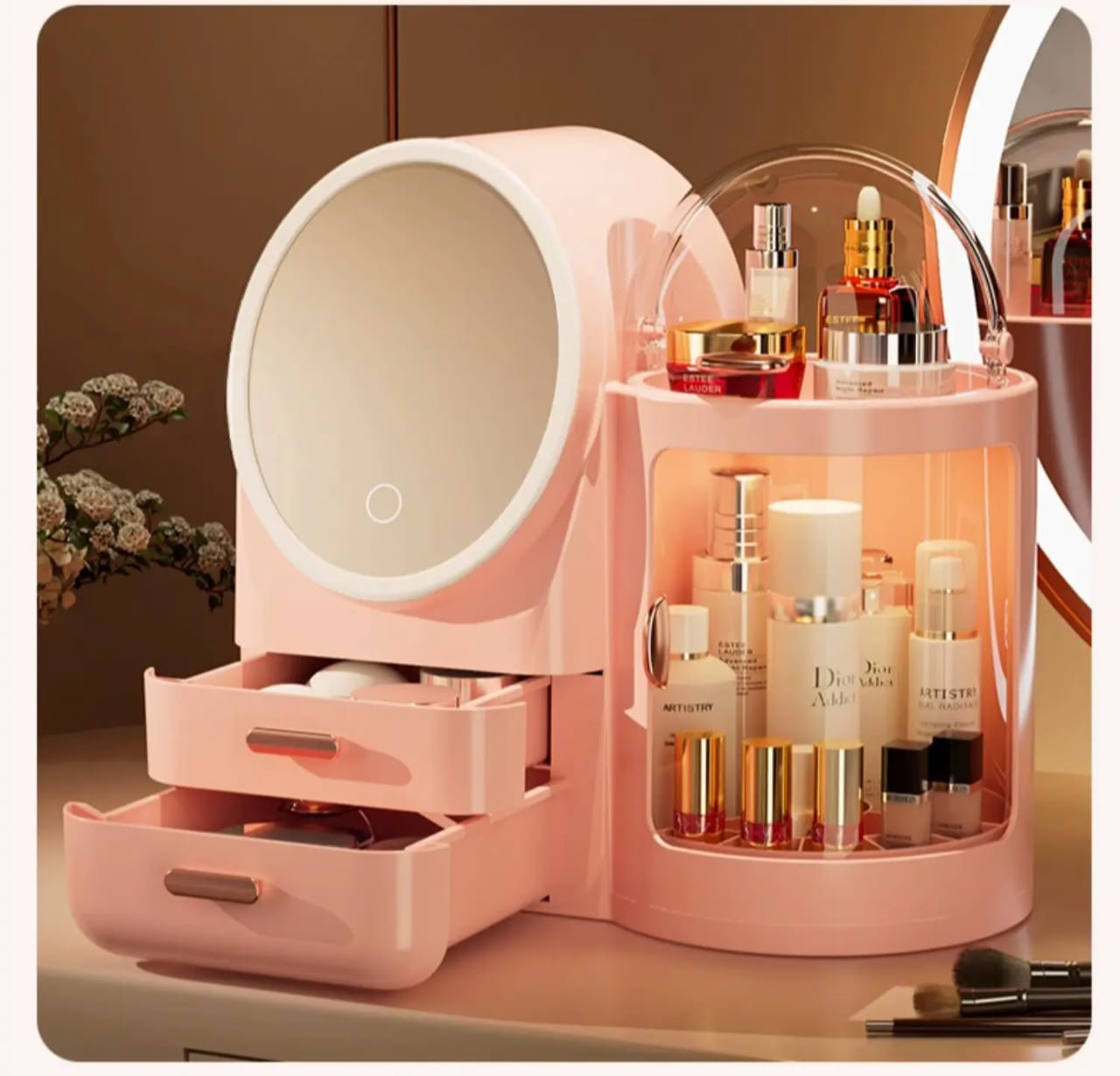 Dustproof LED Makeup Organizer Box with Mirror আপনার ড্রেসিং টেবিলকে আরও গুছানো ও স্টাইলিশ রাখতে একটি premium storage solution। Built-in LED light এবং mirror থাকার কারণে এটি মেকআপ করার সময় extra convenience দেয়।